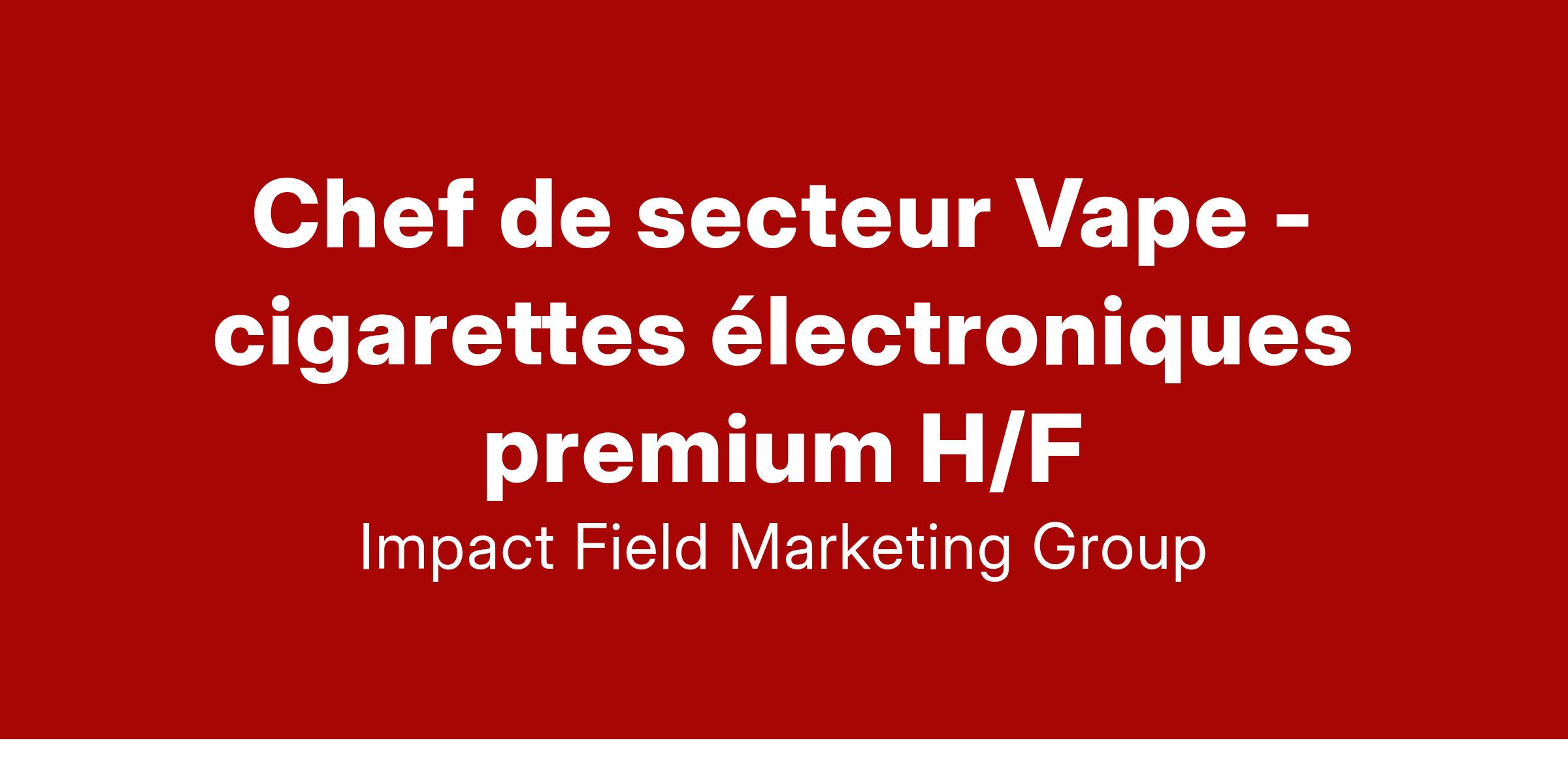 Marvesting recrute aujourd'hui des chefs de secteur H/F spécialisés dans l’univers du vapotage pour le compte d’un leader mondial innovant dans la conception de cigarettes électroniques haut de gamme et des accessoires liés.