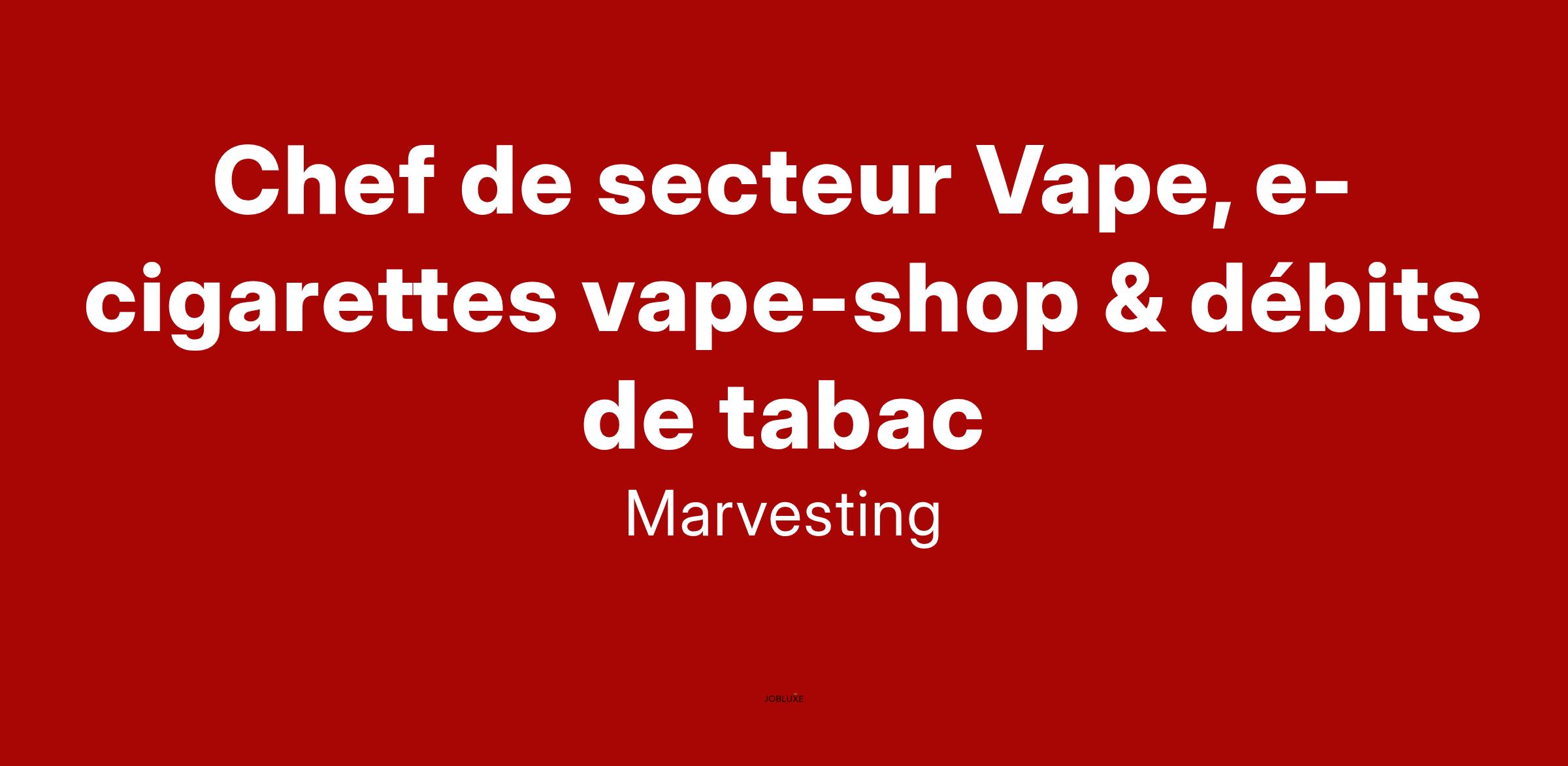 Dans le cadre de son développement Marvesting recrute aujourd'hui des chefs de secteur H/F spécialisés dans l’univers de la vape / vapotage (gamme e-cigarettes tabac & vape-shop)