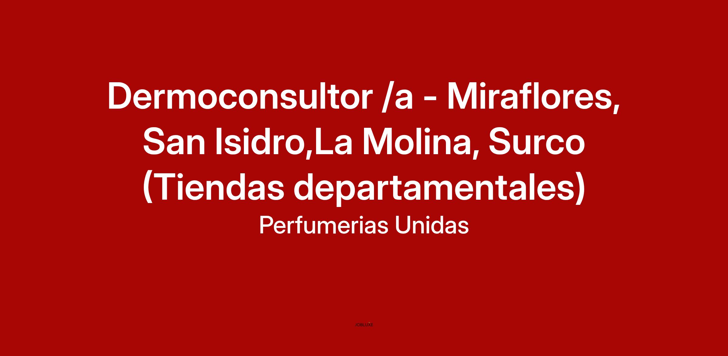 Dermoconsultor /a - Miraflores, San Isidro,La Molina, Surco (Tiendas departamentales)