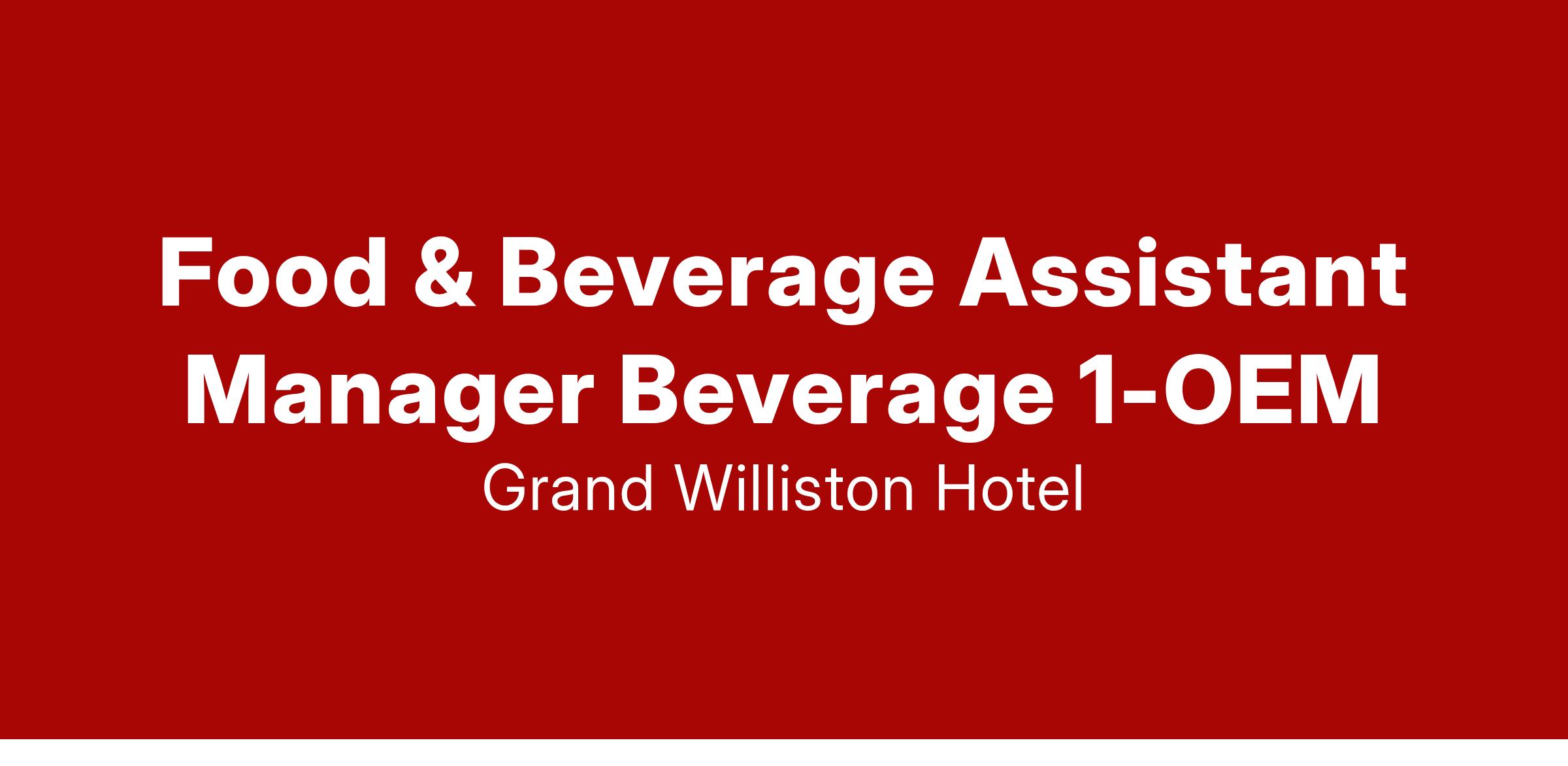 The Food & Beverage Asst Manager assists with assuring attentive friendly courteous and efficient service in all F&B Outlets Room Service Lounge and Banquets while maintaining adherence to budgeted payroll and overhead cost. In partnership with F&B leadership the incumbent is also responsible for continually working towards improving Restaurant Room Service Lounge and Banquet sales revenues to exceed budget. Management-level associates are expected to work as much of each workday as is necessary to complete their job responsibilities; for OEM associates overtime does apply and is calculated accordingly.